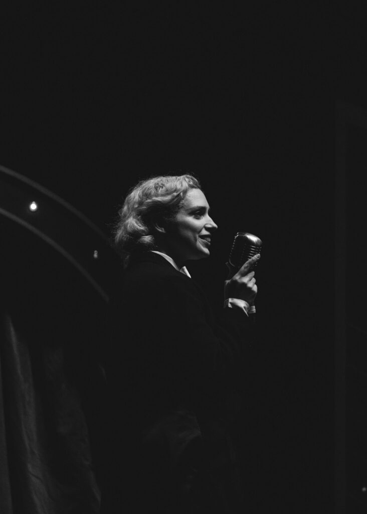 MATHIEU GEFFRE: The set and costumes for The Monocle were designed by Helen Hebert and Nate Gibson. With only a handful of archival images, primarily Brassaï’s iconic photographs, we set out to recreate the club with both rigor and imagination. The set is a careful homage, a miniature replica that evokes the legendary space while allowing it to exist in dialogue with our contemporary production.