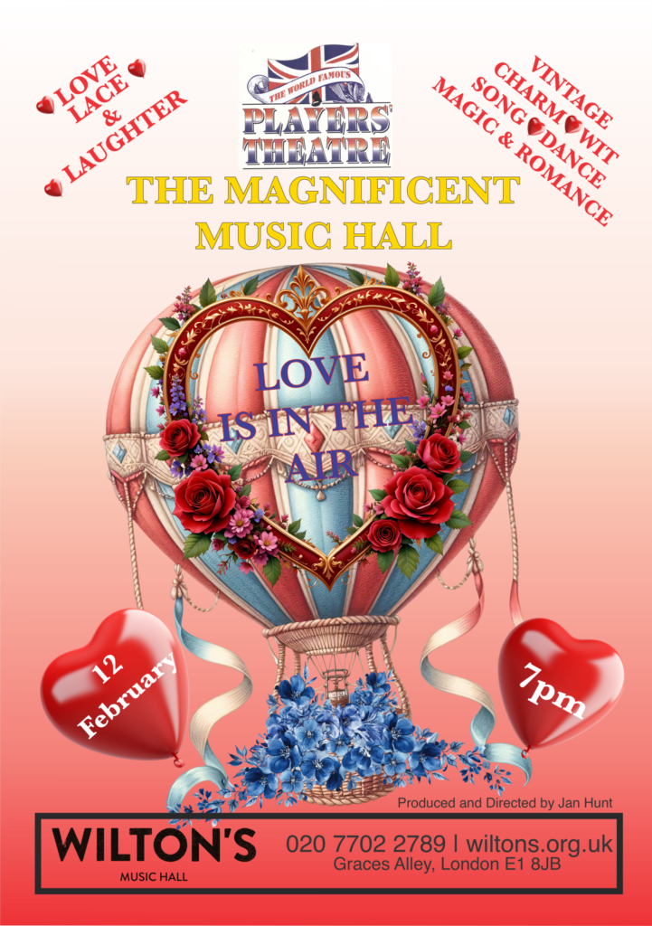With glorious Wilton’s as our backdrop, a jewel of Victorian theatrical heritage, we invite you ladies and gentlemen, to fall head over heels for the charm of yesteryear. Join us for ballads, bawdy banter, amourous antics, toe tapping tunes and heart fluttering hilarity, all steeped in velvet and gaslight Victorian style. Just don’t forget your heart strings, we will be tugging them all evening!